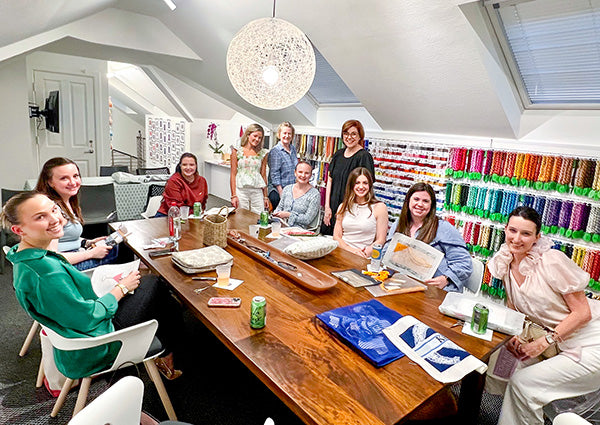 The name Wipstitch is a play on the acronym for Work in Progress (WIP), the term a stitcher commonly uses to refer to their current needlepoint project. Turns out the name was a perfect fit as we have grown into more than just a canvas design business. We have four unique offerings. Our bread and butter are our hand-painted needlepoint canvas designs. Next, our bag collection, which began as a project accessory to the canvases but is rapidly being built out into a much broader line of personal organizational tools. We’ve also developed a new line of stitched ornaments, hand-stitched and hand-finished, and ready to purchase for those who value the artistry of beautiful heirloom needlepoint. And finally, and maybe dearest to our hearts, is our beautiful stitching studio and showroom, The Attic, where we host classes and events for the growing Dallas needlepoint community.