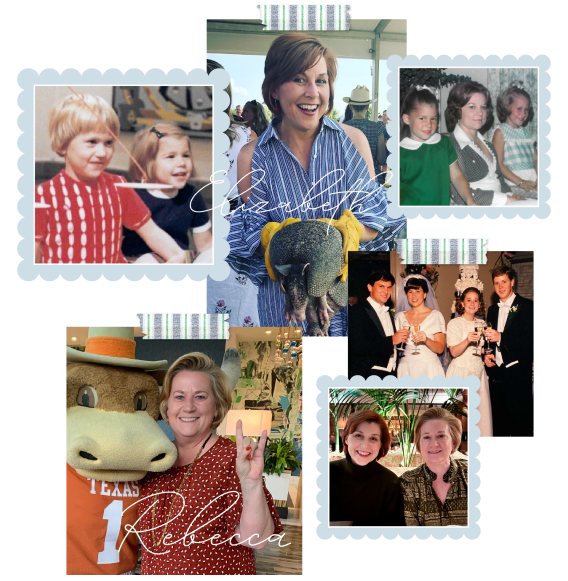 We’re Elizabeth and Rebecca, sisters born one year apart. Texas is our home, and here our lives revolve around our families and our friends. We grew up in Dallas, attended The University of Texas together (Hook ‘em!), and even had a double wedding. Bringing people together was and is a constant occurrence for us, and stitching beautiful mementoes for the people we love is just part of who we are. Between us, we’ve needlepointed more than 16 stockings (including one prize winner each at the State Fair of Texas), and literally hundreds of other projects, most of which we give away. Our skill sets are complementary. Elizabeth is the creative, the designer with a background in branding and marketing. Rebecca is the fundraiser and philanthropist with a knack for community-building. Together, we have blended our talents into Wipstitch with the tight sister bond we bring to everything we do.