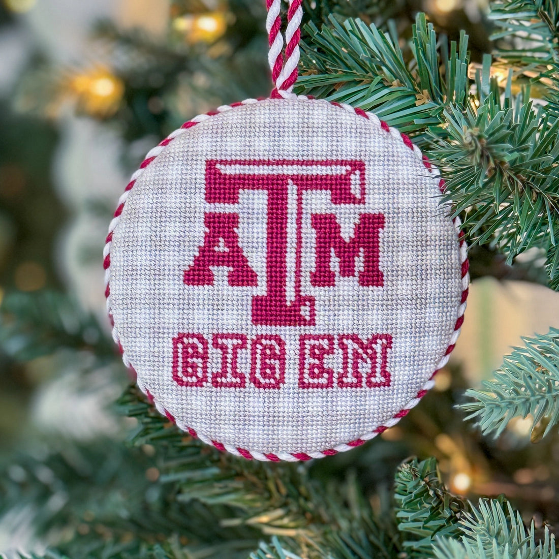 Our adorable ornaments are hand-stitched and hand-finished with a curated finishing textile and matching cording. The ornament measures approximately 4" round.
