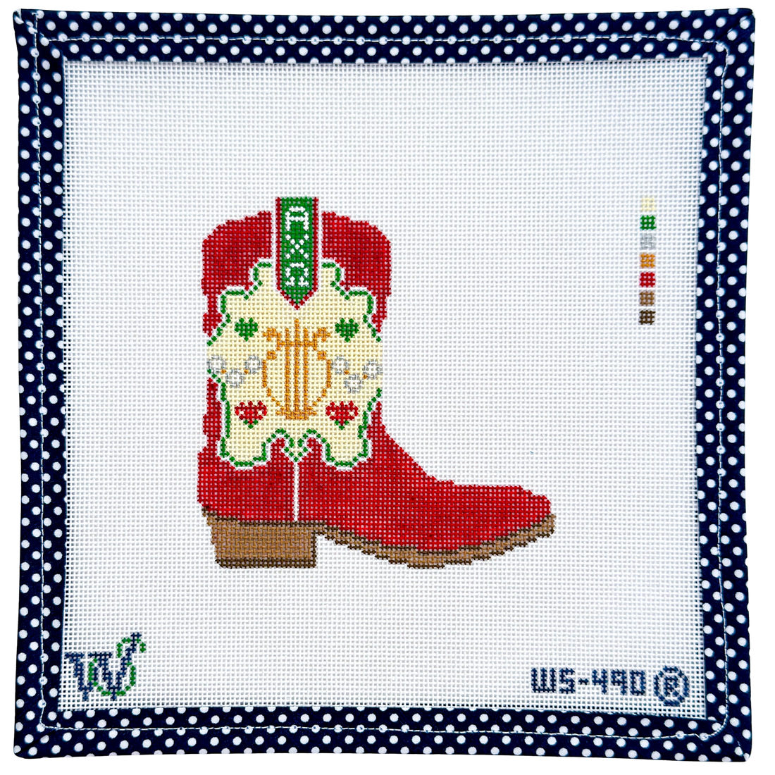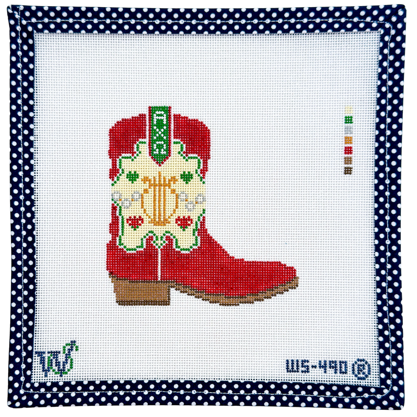 Hand-painted on 18 mesh Zweitgart canvas, the design measures approximately 4" wide by 4" tall.