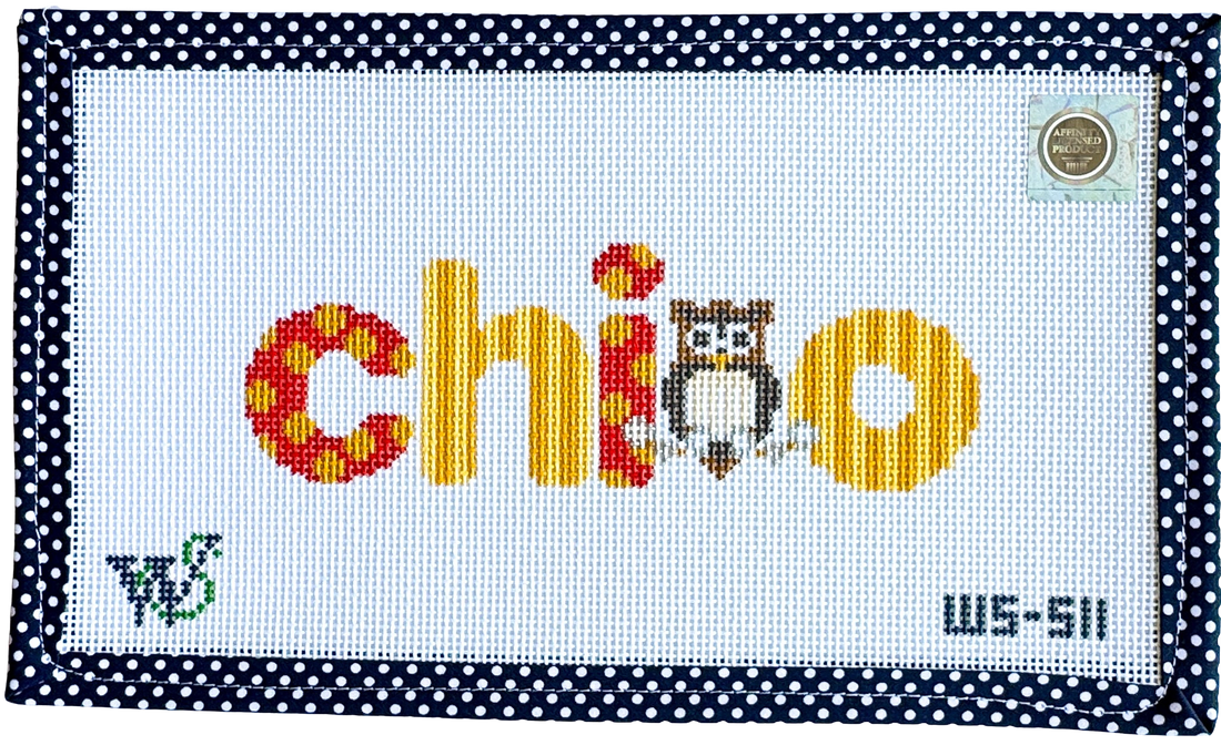 Hand-painted on 13 mesh Zweitgart canvas, the design measures approximately 10" wide by 6" tall. Perfect for a beginner-level project.