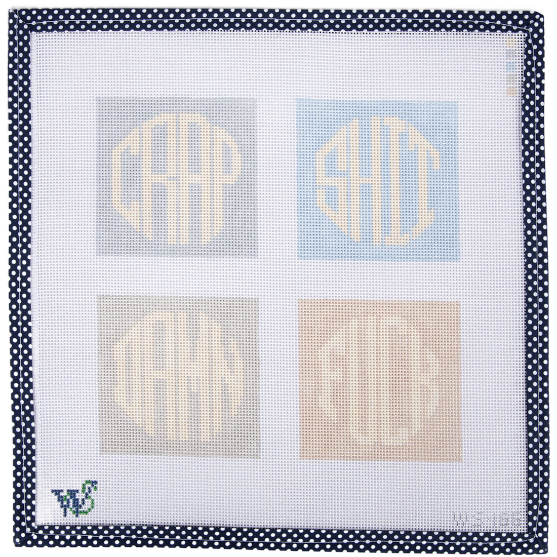 Offering hand-painted and stitch-printed on 13 mesh Zweitgart canvas, each coaster design measures approximately 4" wide by 4" tall.