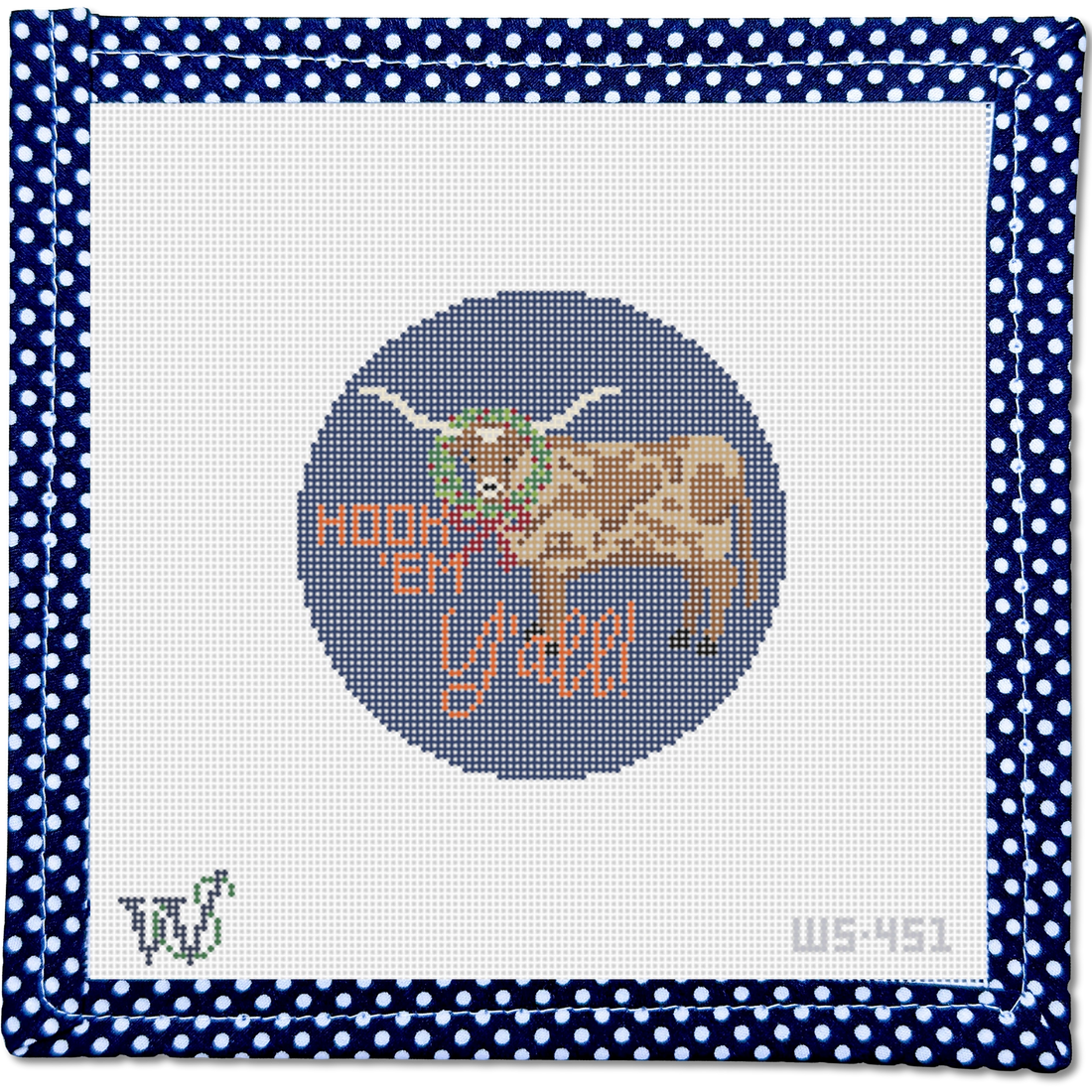 Stitch-printed on 18 mesh Zweitgart canvas, the design measures approximately 4" round.