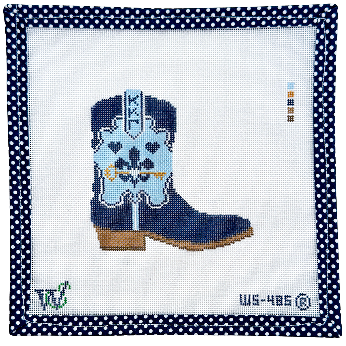 Hand-painted on 18 mesh Zweitgart canvas, the design measures approximately 4" wide by 4" tall.