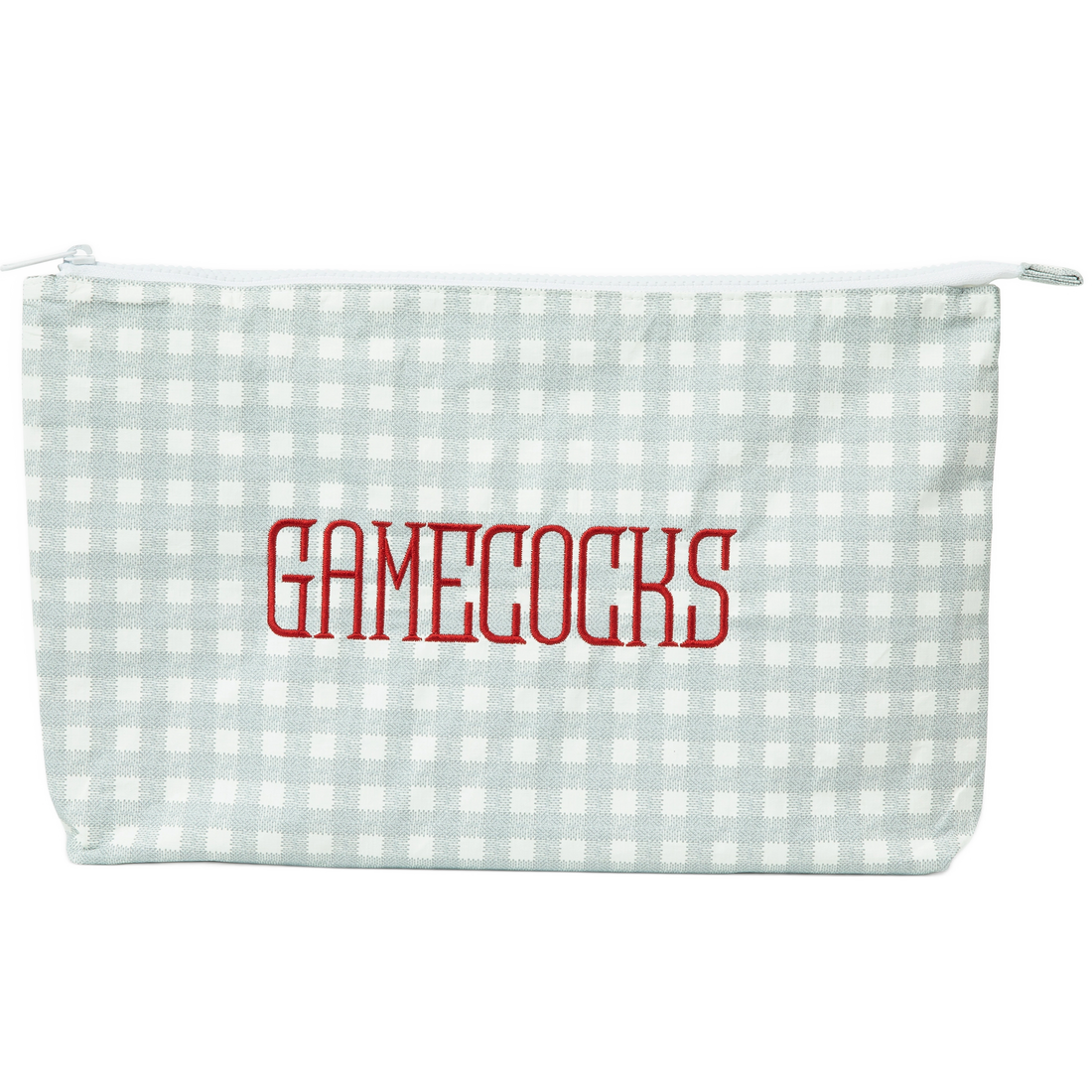 Show off your South Carolina pride with our medium embroidered stash bag, perfect for organizing projects, travel essentials, makeup, school supplies, and more.