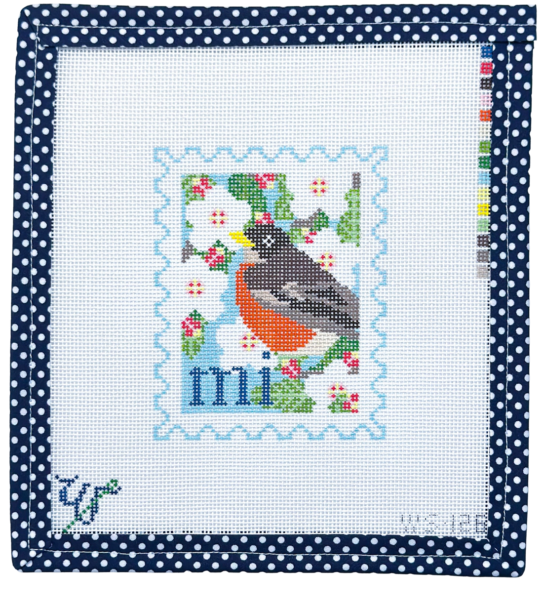 Hand-painted on 18 mesh Zweitgart canvas, the design measures approximately 3.5" wide by 4.25" tall.