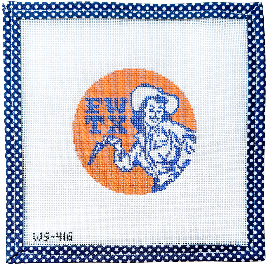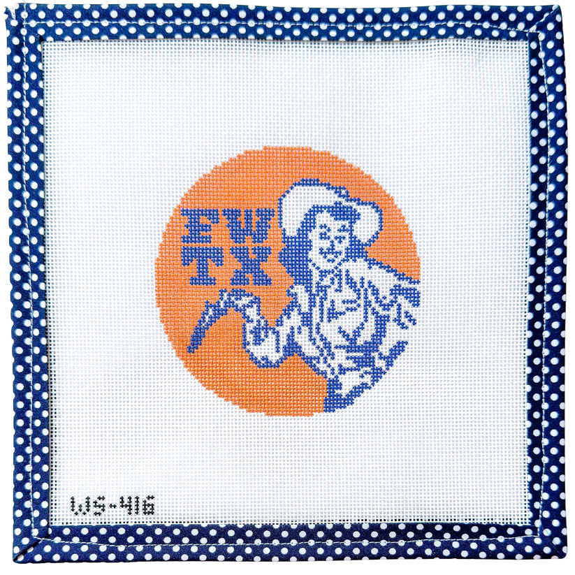 Hand-painted on 18 mesh Zweitgart canvas, the design measures approximately 4" round.