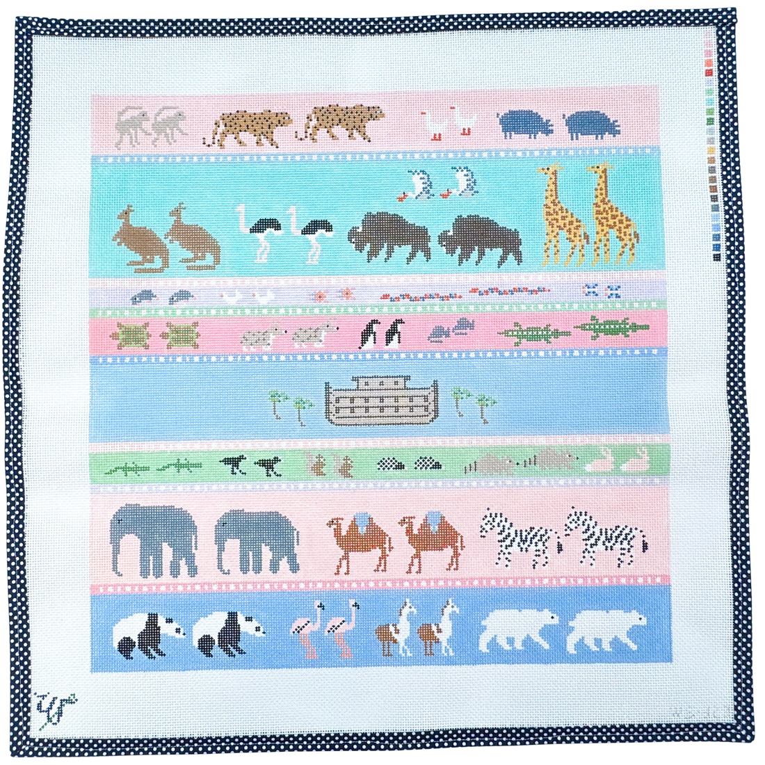 Hand-painted on 13 mesh Zweitgart canvas, the design measures approximately 22" wide by 22" tall.