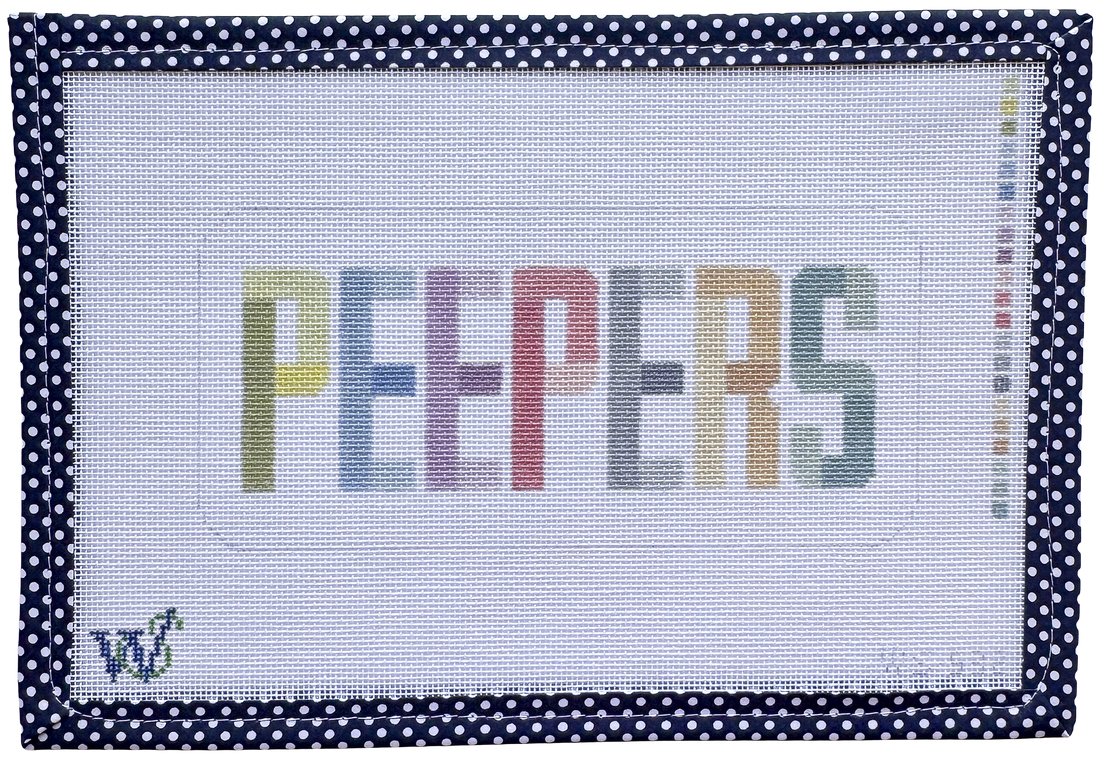 Hand-painted on 18 mesh Zweitgart canvas, the eyeglass case design measures approximately 7" wide by 3.5" tall. Perfect for a beginner-level project.