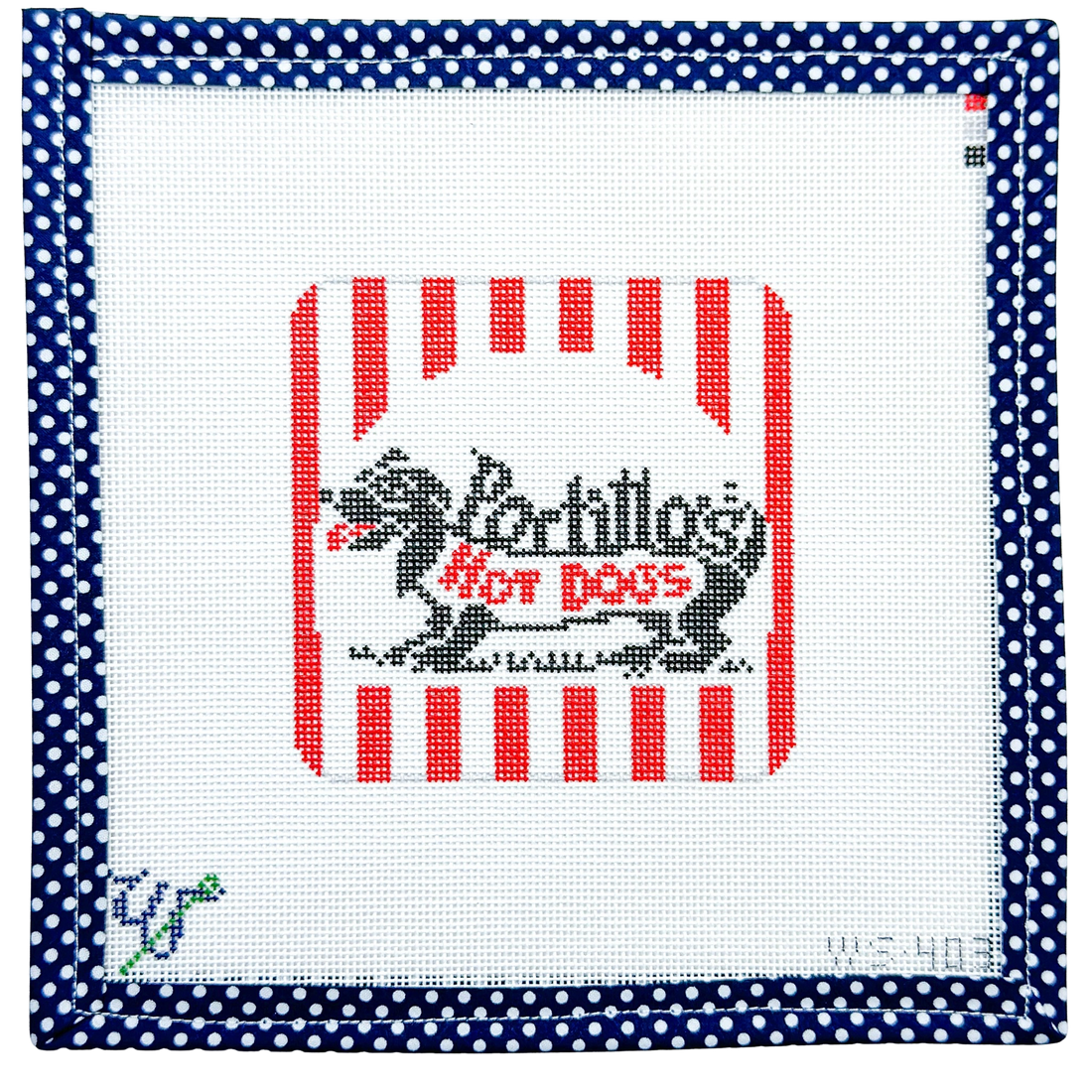 Hand-painted on 18 mesh Zweitgart canvas, the design measures approximately 4" wide by 4" tall.