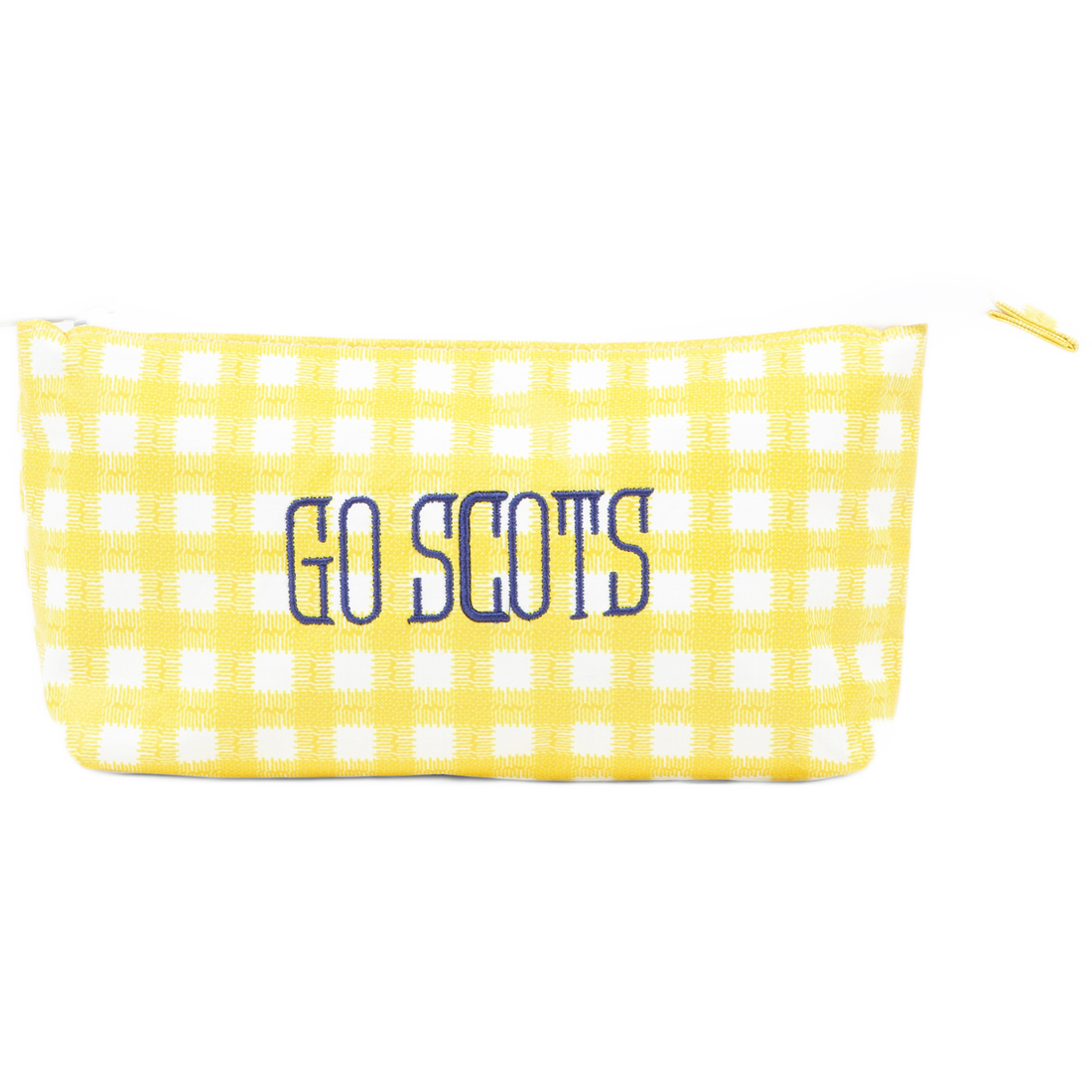 Show off your school pride with our small embroidered stash bag, perfect for organizing travel essentials, cosmetics, school supplies, and more.