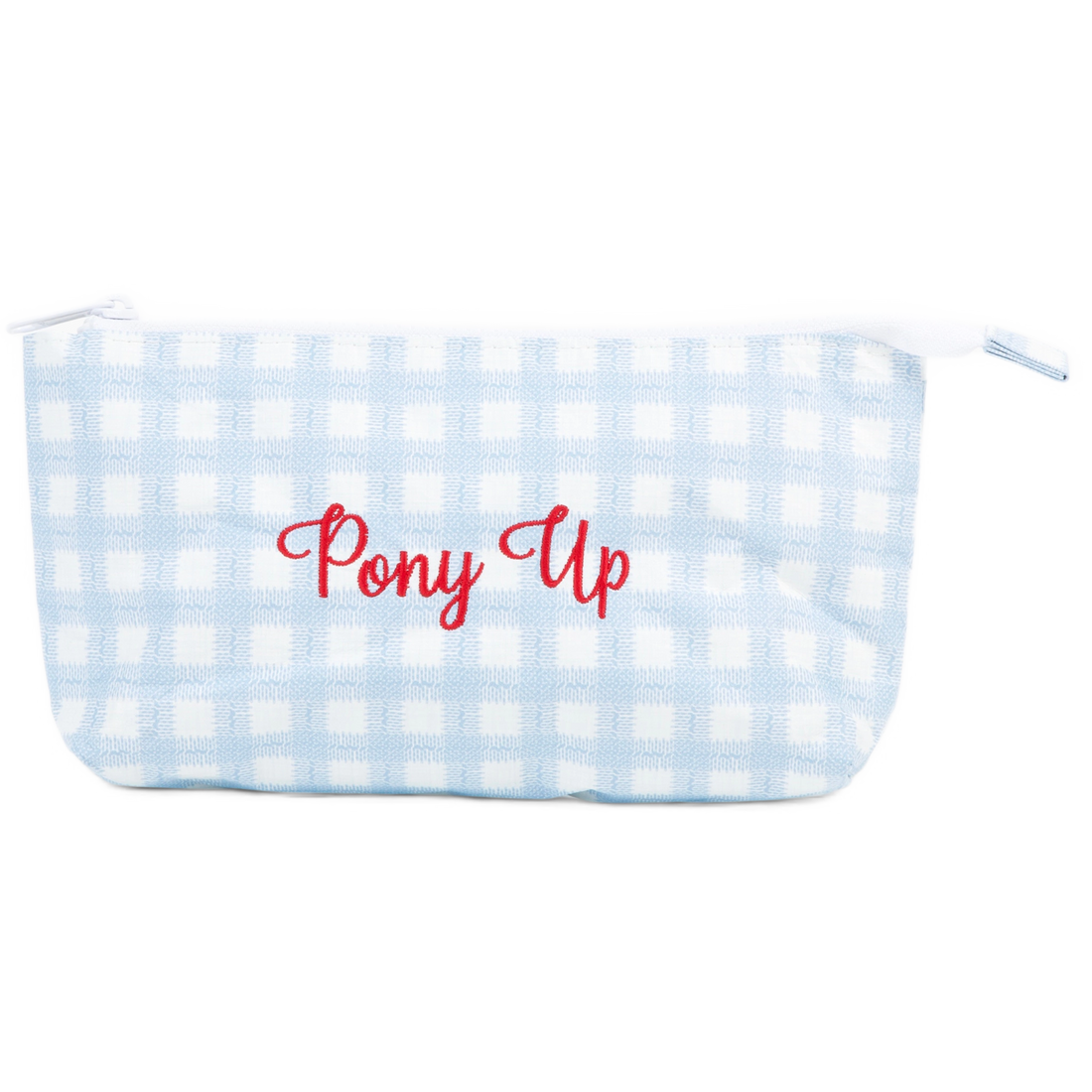 Show off your SMU pride with our small embroidered stash bag, perfect for organizing projects, travel essentials, makeup, school supplies, and more.