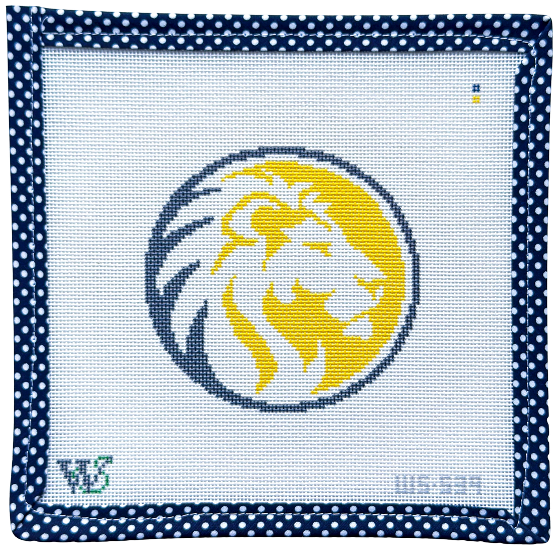 Hand-painted on 18 mesh Zweitgart canvas, the design measures approximately 4" wide by 4" tall.