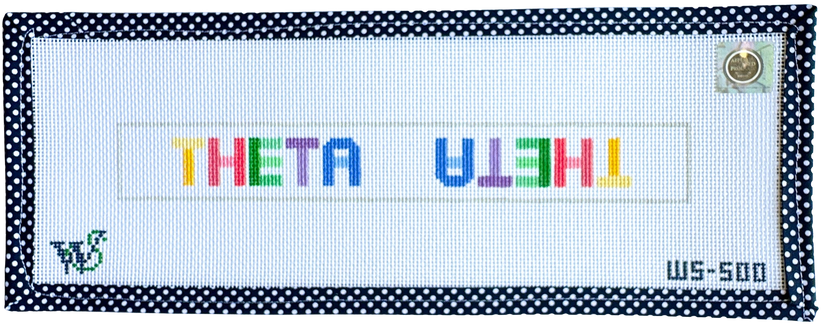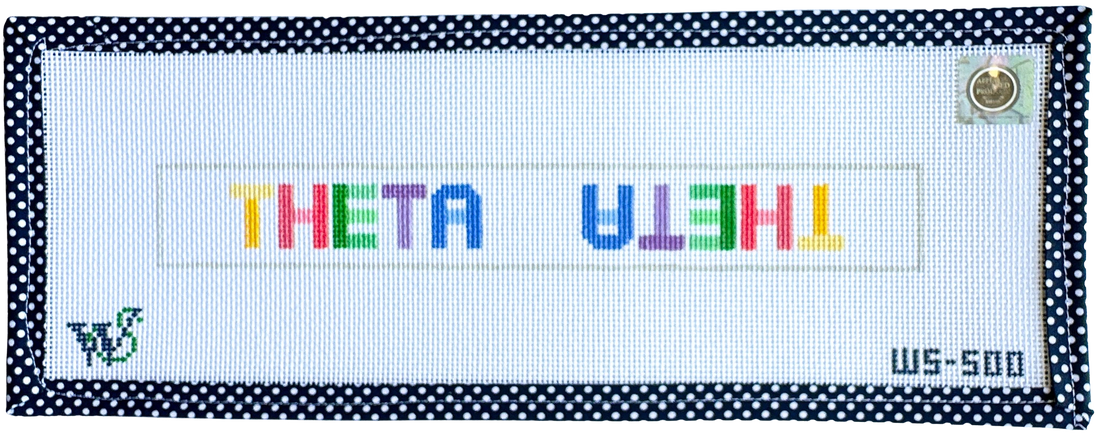 Hand-painted on 13 mesh Zweitgart canvas, the design measures approximately 9.5" wide by 1.5" tall. Perfect for a beginner-level project.