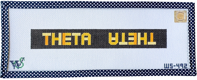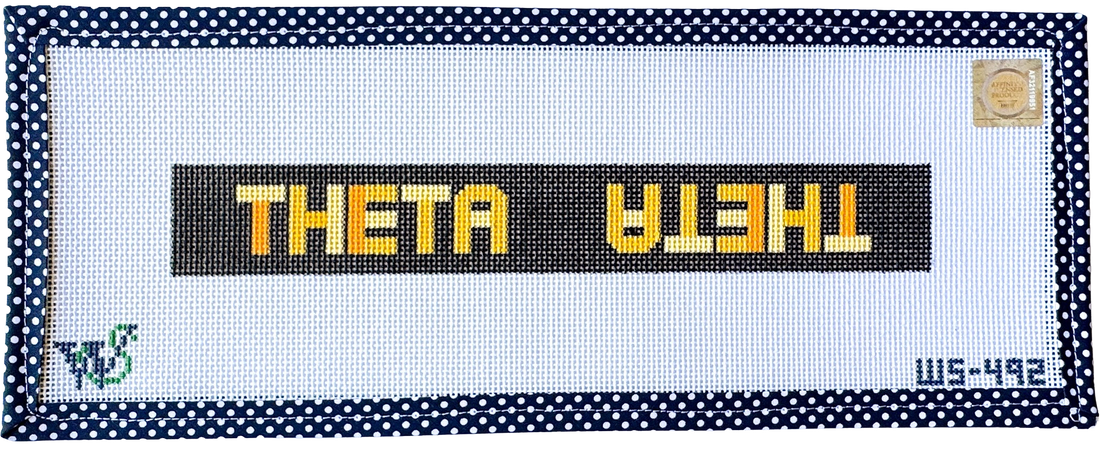 Hand-painted on 13 mesh Zweitgart canvas, the design measures approximately 9.5" wide by 1.5" tall. Perfect for a beginner-level project.