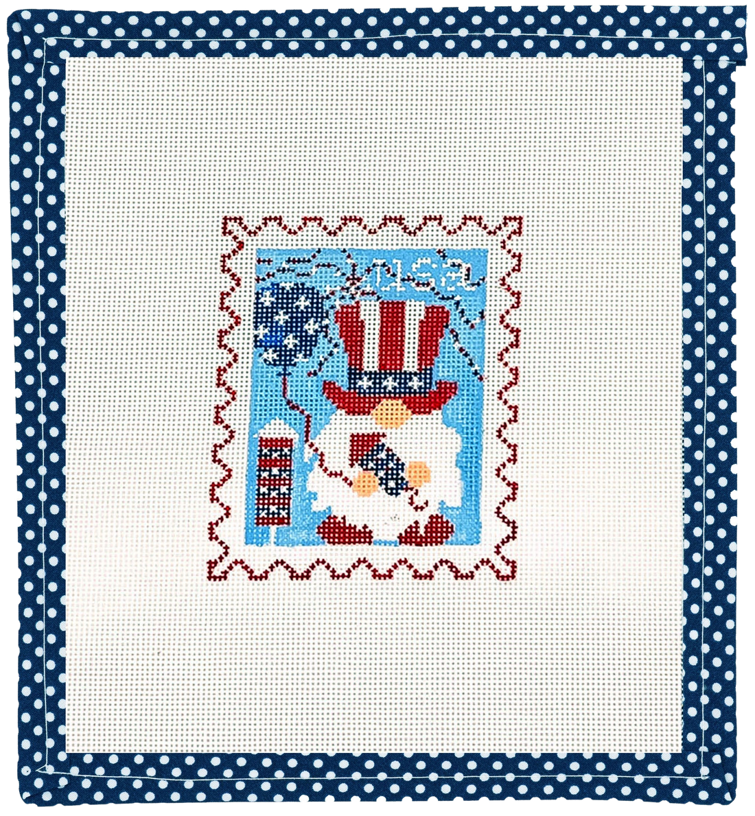 Hand-painted on 18 mesh Zweitgart canvas, the design measures approximately 3.5" wide by 4.25" tall.