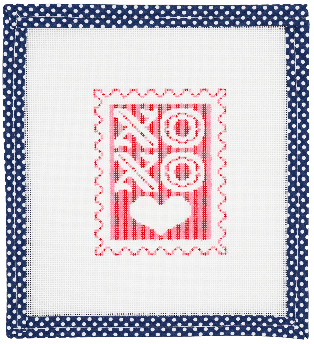 Hand-painted on 18 mesh Zweitgart canvas, the design measures approximately 3.5" wide by 4.25" tall.