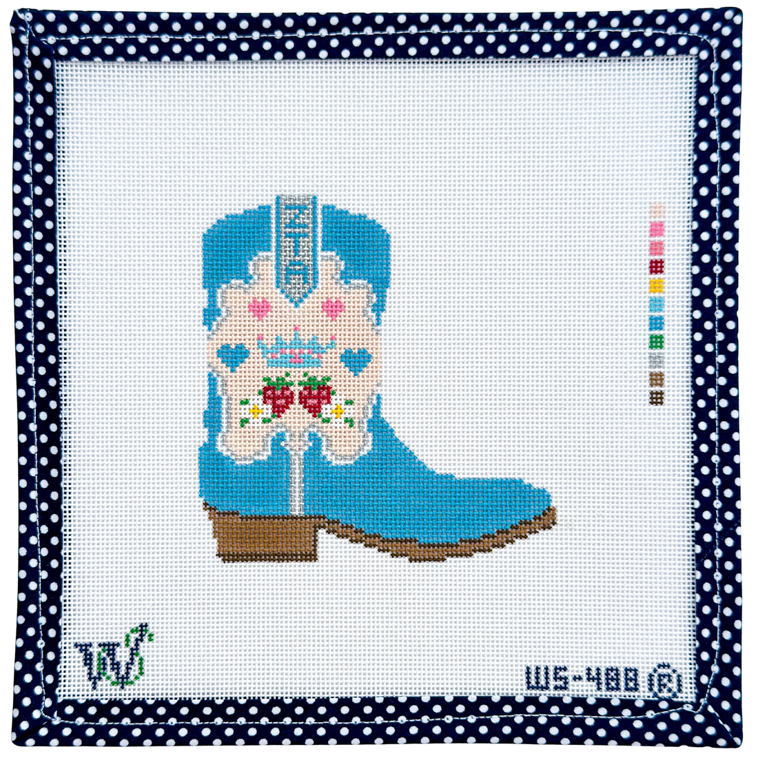 Hand-painted on 18 mesh Zweitgart canvas, the design measures approximately 4" wide by 4" tall.